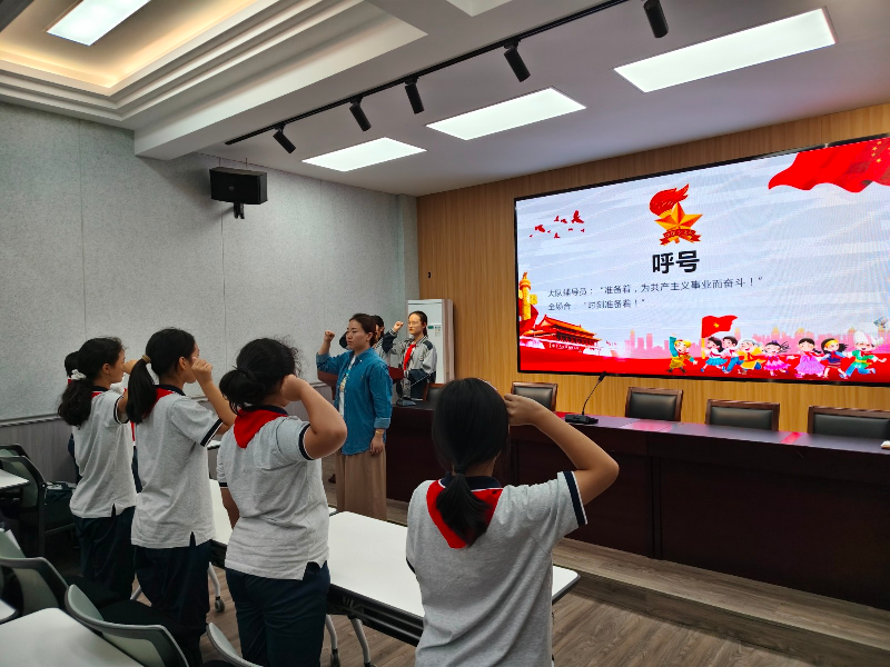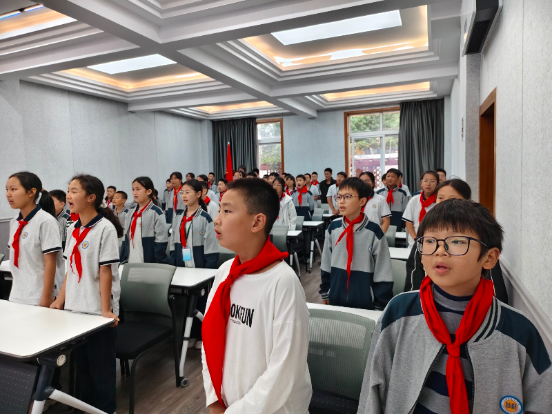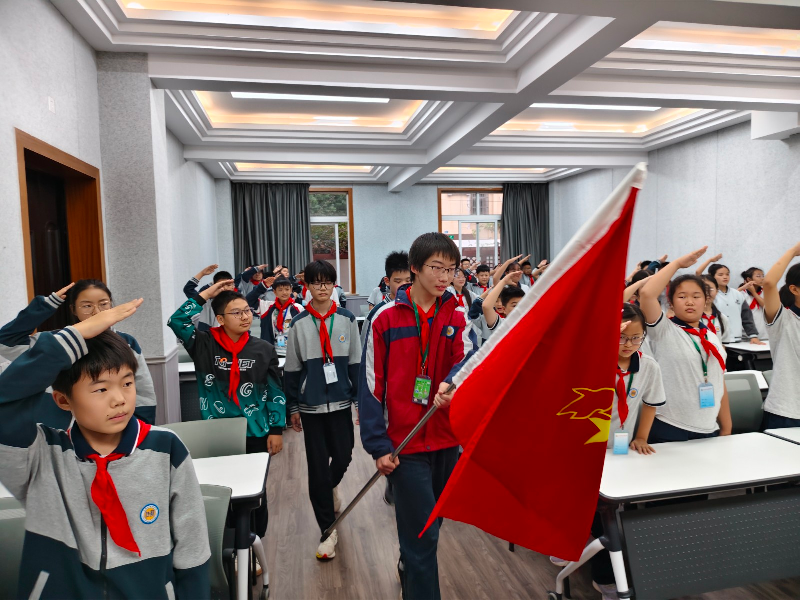 旗手迈着铿锵有力的步伐护送队旗入场,全体队员行队礼、唱队歌,嘹亮的歌声在校园回荡,点燃了每一位队员心中的使命感。