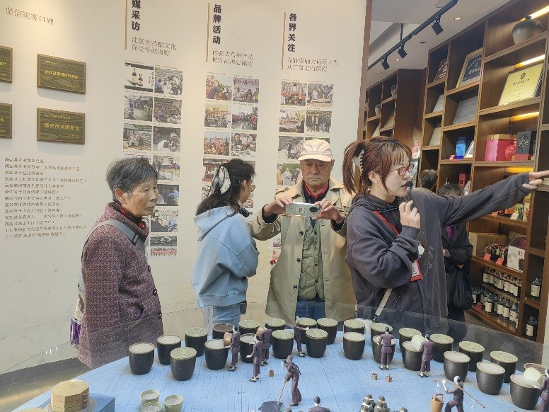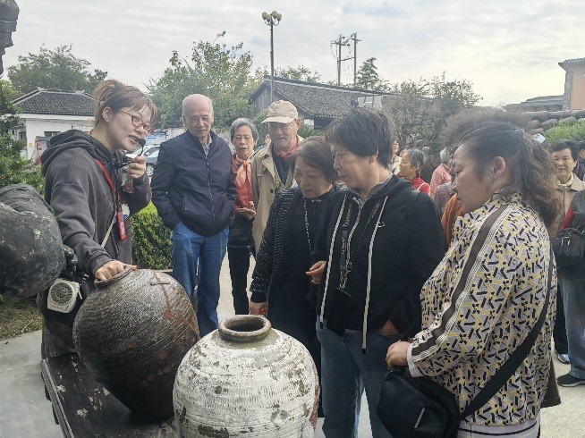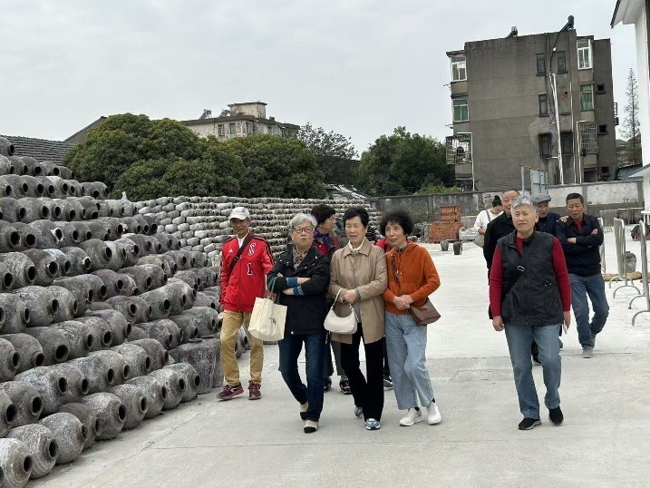 行程首站,抵达拥有138年悠久历史的沈荡酿造厂。跟随着讲解员的步伐,老教师们深入探访了这座百年老厂的传统酿造车间与酒文化展厅。面对古朴的酿造工具、宏大的储酒陶缸以及空气中弥漫的醇厚酒香,大家纷纷驻足,细细观摩,感慨于传统酿造技艺的匠心独运与百年企业坚守的不易,仿佛进行了一场穿越时空的工业文化之旅。