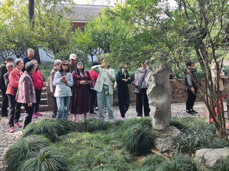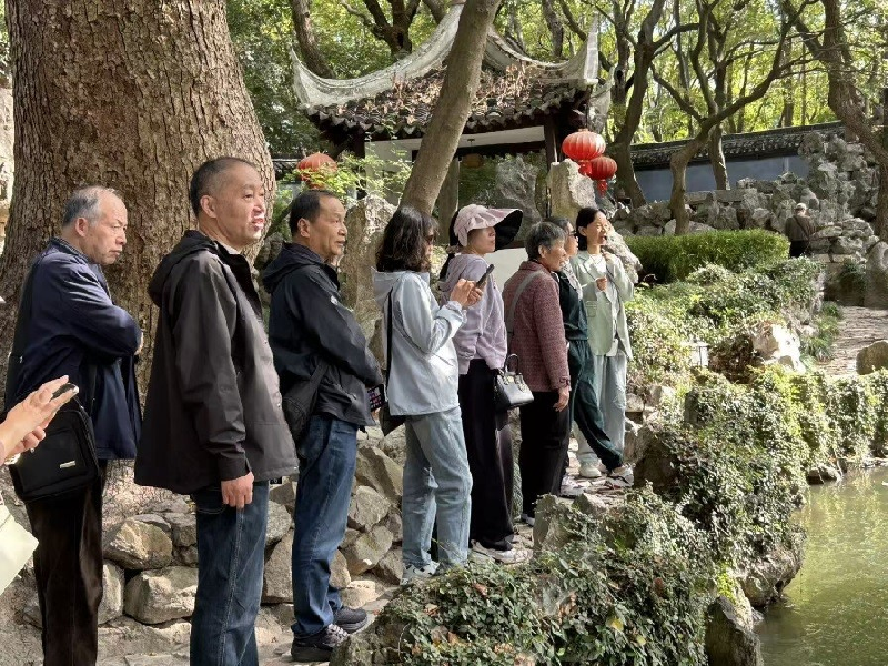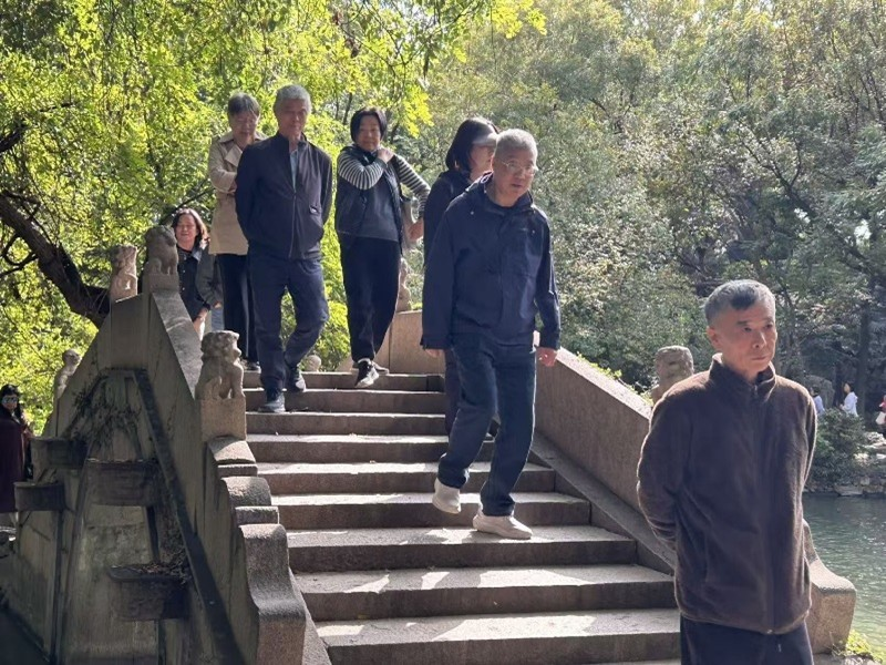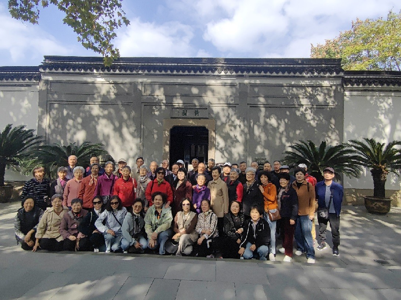 午后,队伍移步至素有“江南名园”之称的海盐绮园。园内亭台错落,曲径通幽,古树参天,秋水如镜。老教师们三五成群,或漫步于回廊水榭之间,欣赏玲珑秀雅的园林景致;或小坐于石凳凉亭之内,沐浴着秋日和煦的阳光,闲话往昔教书育人的岁月,畅谈退休生活的点滴乐趣,脸上无不洋溢着舒心、惬意的笑容。