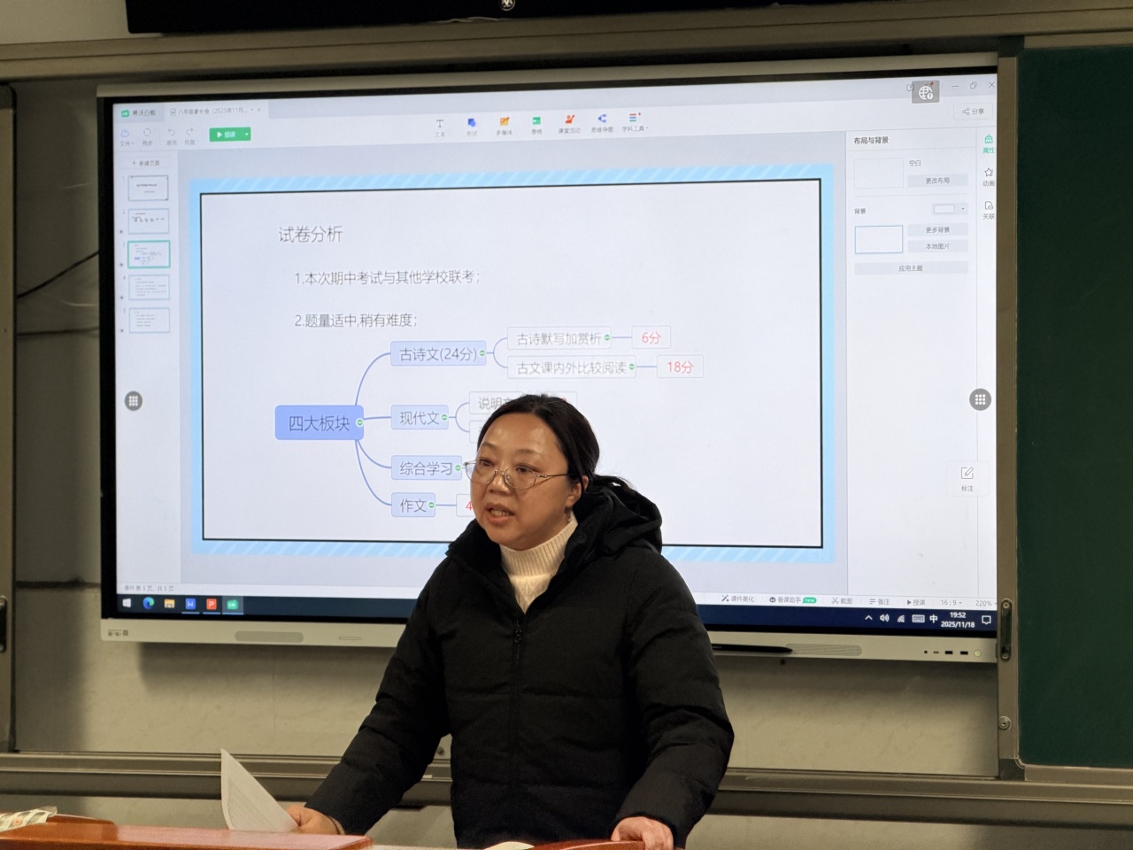 专题讲座结束后,由各班主任主持班级交流会。班主任们精心准备,就本学期以来的班级整体情况、学生在校表现、阶段性的学业与行为习惯养成等方面,向家长们进行了系统而详细的汇报。班主任们不仅分享了孩子们成长的亮点与进步,也就班级存在的共性问题与家长们进行了坦诚的沟通,并提出了下一阶段家校合作的具体建议与期望。
