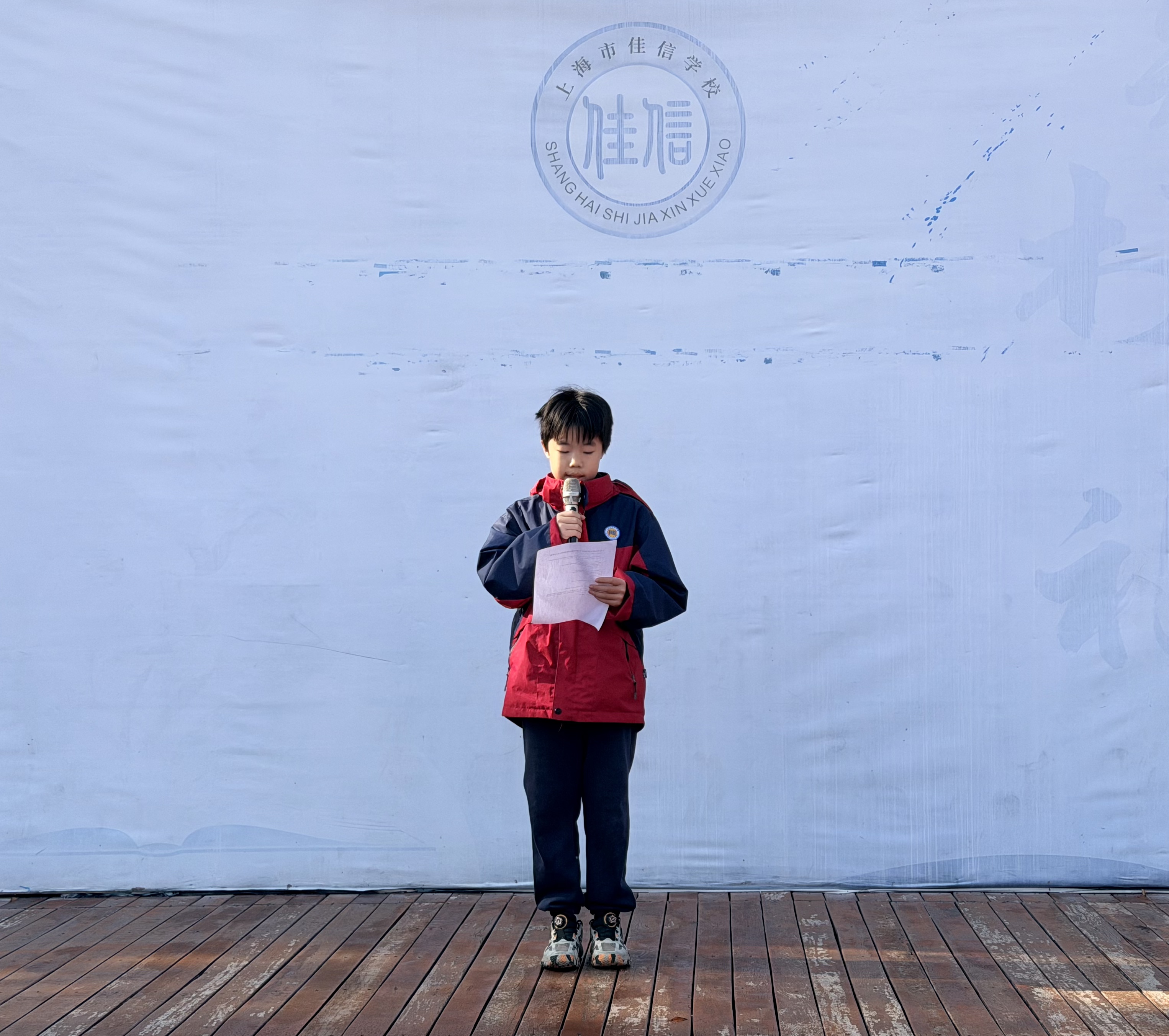2025年12月29日,佳信学校中学部校园内洋溢着欢腾的气息,2025年趣味运动会颁奖仪式在全体师生的共同期待中拉开了帷幕。本次颁奖仪式由六(1)夏东辰同学担任主持。