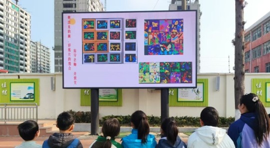 1月14日上午,佳信学校小学部开展2025学年第一学期美术学科特色作业展示活动,本展示活动分平面作品和立体作品两部分,共展示约100份一~五年级的学生作品。这些作品为学生课堂练习,分“主题创作绘画”、“电脑作品展”和“立体作品”三部分,美术组老师进行了现场布展,在B号楼一楼走廊展示了学生的平面作品,在学校操场大屏幕上滚动展示了学生的立体作品。