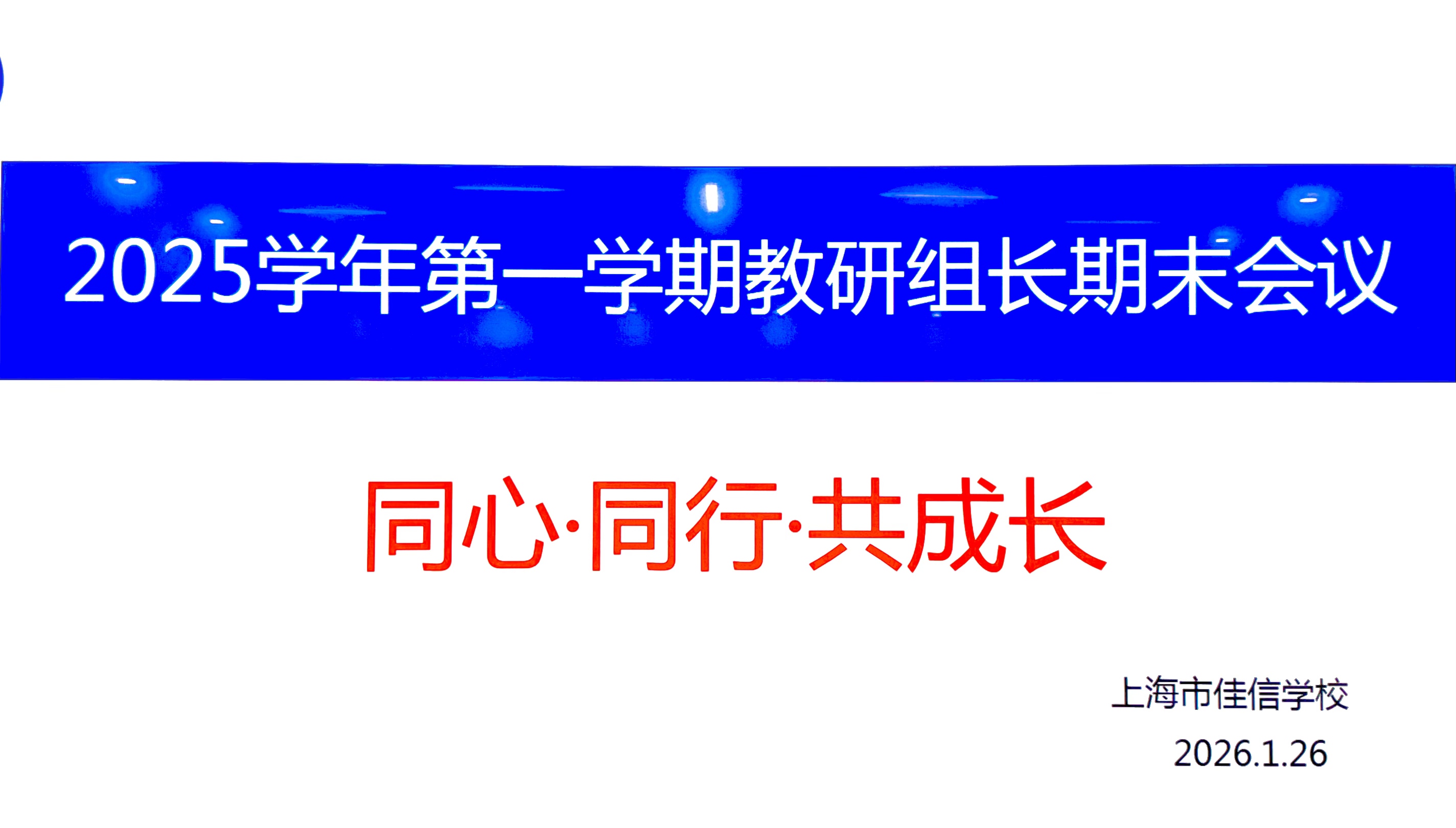 2026年1月26日,佳信学校中学部召开了学期末教研组长工作会议,回顾总结本学期教研工作,部署期末及寒假相关任务。副校长谢向荣、教学一处主任许超及各学科教研组长参加会议。
